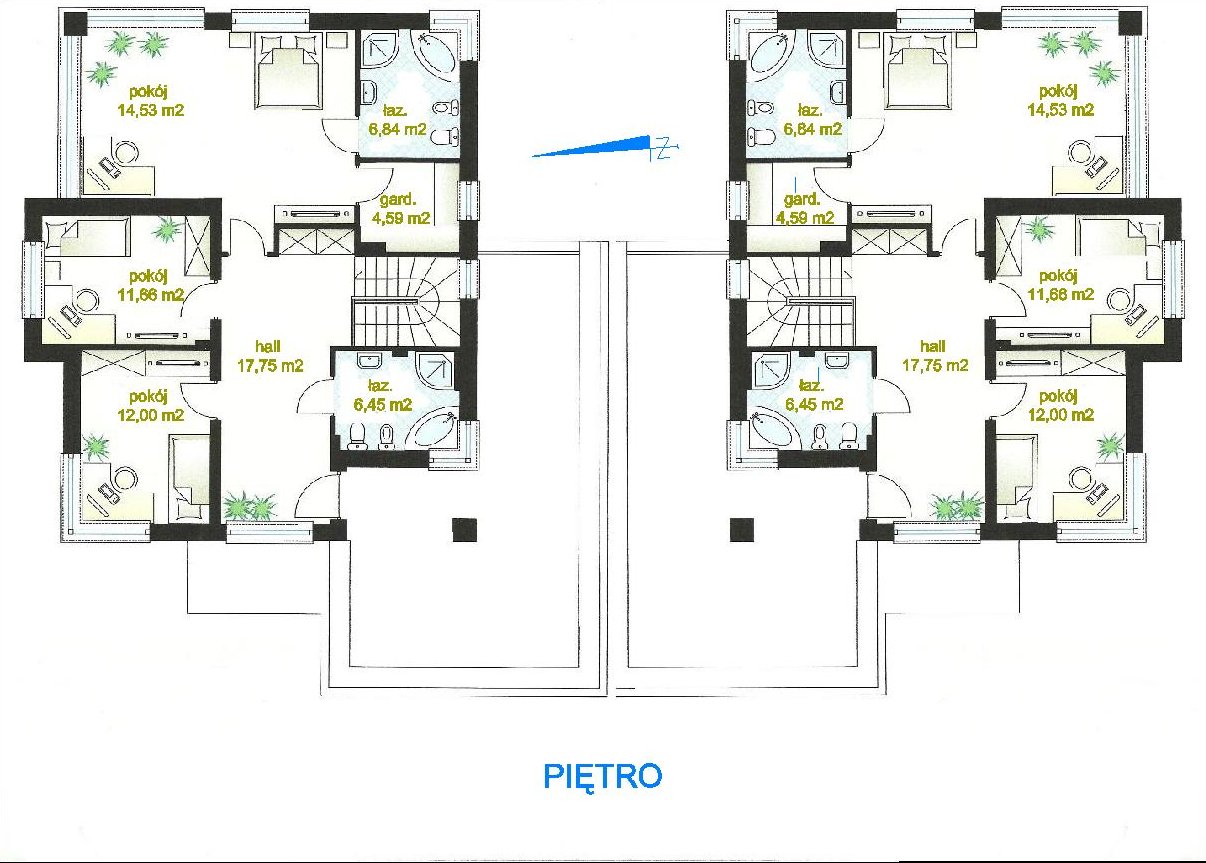 Rodzaj Inwestycji: Budowa budynku mieszkalnego jednorodzinnego w zabudowie bliźniaczej, typu Andromeda. Działka ulokowana w pobliżu Lasów Sękocińskich ; miejscowość dobrze skomunikowana z pobliskim Piasecznem i Warszawą. Może być dogodnym miejscem wypadowym do uzdrowiska Konstancińskiego i terenów rekreacyjnych w Zalesiu Dolnym i Górnym. Planowany budynek zostanie zrealizowany jako nowoczesny i komfortowy obiekt dający duże poczucie przestrzeni przy zachowaniu klasycznego podziału na dwie podstawowe strefy użytkowe: dzienną i nocną. Parter składa się z przestrzennej kuchni, dużego salonu z wyjściem na taras, a także dodatkowego pokoju, który może pełnić funkcję gabinetu, wc z prysznicem w dyskretnym miejscu; dodatkowo na parterze pomieszczenie gospodarcze z kotłownią i przejściem do garażu. Strefę nocną stanowią trzy wygodne sypialnie, w tym jedna z oddzielną przestronną łazienką i garderobą, i dodatkowa łazienka obsługująca dwa pozostałe pokoje. Z hallu na piętrze wyjście na przestronny taras na dachu.