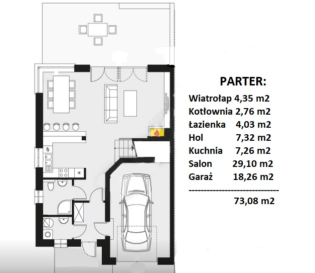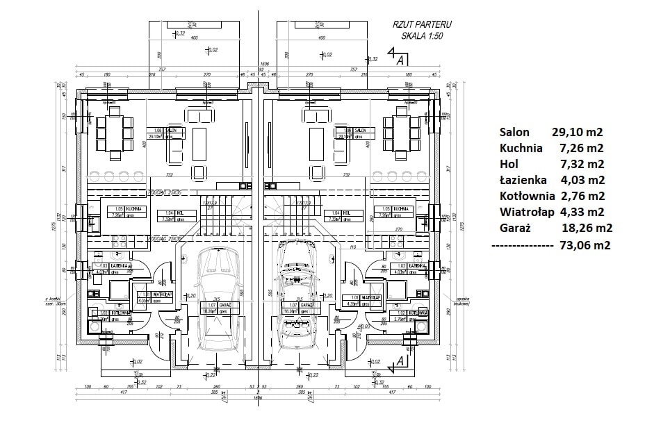 Projekt DOM – Bliźniak o powierzchni użytkowej 143,96 m2 składający się z: