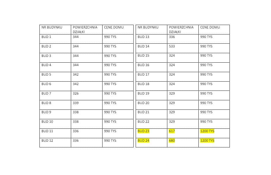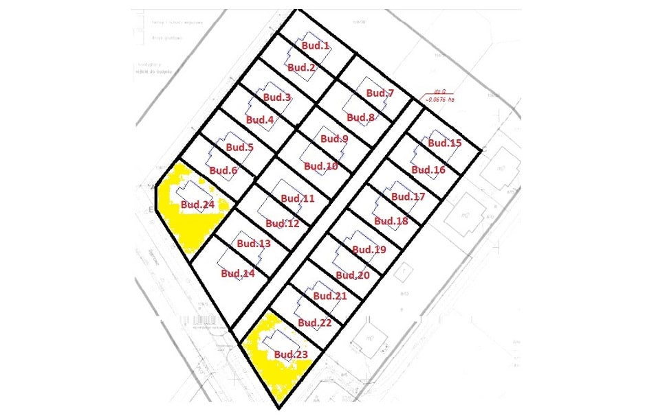 Budynki wolnostojące są tylko dwa. Działki do nich to 680 m2 i 617 m2